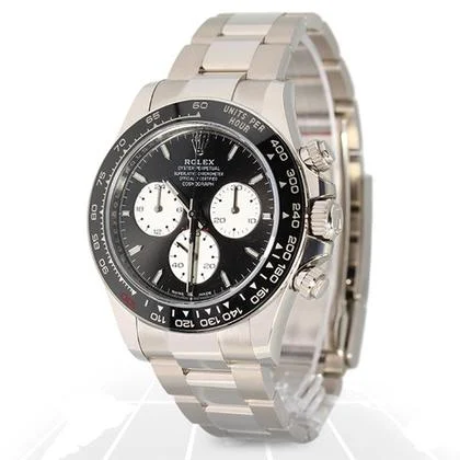 Rolex Cosmograph Daytona Le Mans 126529LN 40 mm watch. Model reference: 126529LN. 18k white gold case with black ceramic bezel. White dial with black subdials. Automatic chronograph movement. Oysterflex rubber strap with 18k white gold folding Oysterlock clasp. Swiss made. The watch comes in the original packaging, with a set of documents and 5 years warranty. At The Timekeepers, we offer new authentic watches at the best prices.